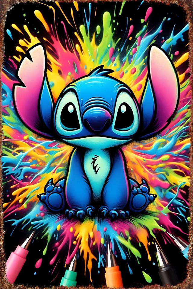 Detalles del productoCartel metálico con diseño de Stitch de Disney, estilo vintage.