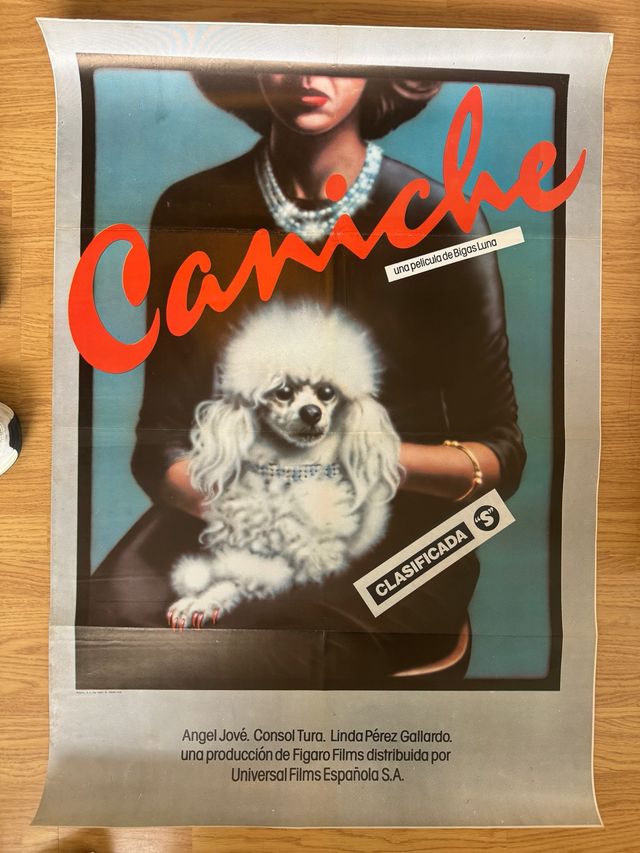Detalles del productoCartel de cine original del estreno de la película Caniche dirigida por Bigas Luna. Clasificada S. Reparto: Angel Jové, Consol Tura, Linda Pérez Gallardo. Medida aproximada 70X100 cm. El poster se encuentra tal y como se ve en las imágenes.