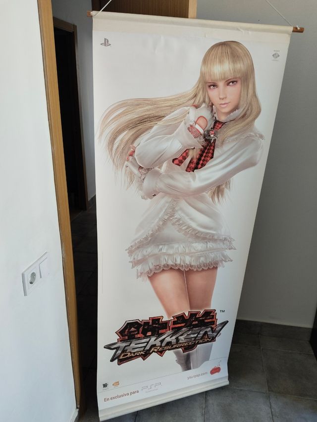 Cartel publicitario del juego Tekken dark resurrection,el cartel tiene señales de aver estado expuesto en una tienda muy raro de ver , el cartel es de cartón