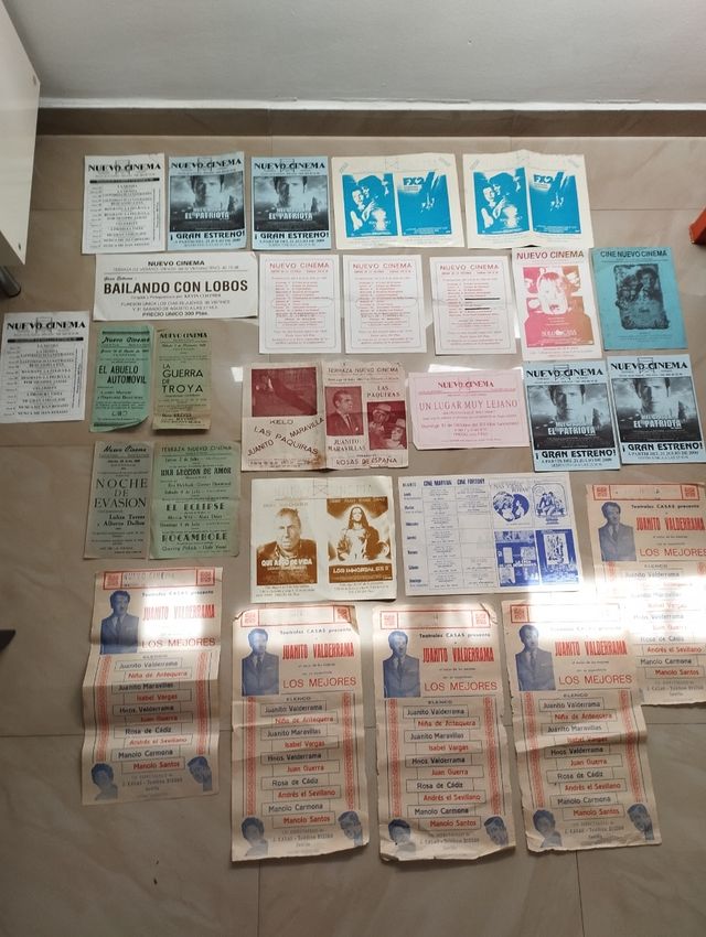 Detalles del productoColección de 27 carteles de cine del Nuevo Cinema de Rincón de la Victoria, Málaga. Son programas de mano de películas proyectadas en el cine. Incluyen títulos como Solo en Casa, Bailando con Lobos, El Abuelo, La Guerra de Troya, Hook, El Patriota, Rugrats.....Los carteles están en buen estado.