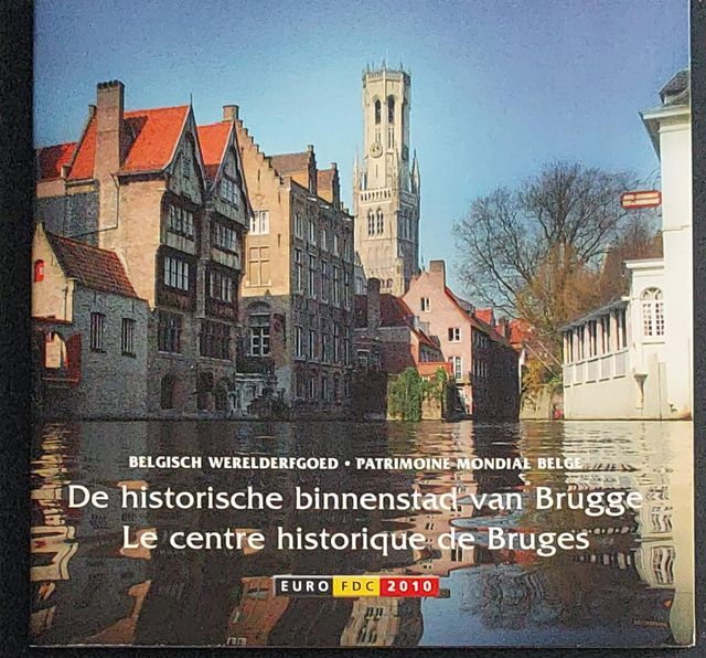 Cartera conmemorativa de Bélgica del año 2010. - Incluye monedas de Euro. - Sello FDC (First Day Cover).