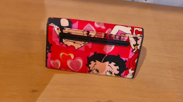 Cartera con estampado de Betty Boop y corazones. - Diseño colorido y divertido. - Cremallera exterior.