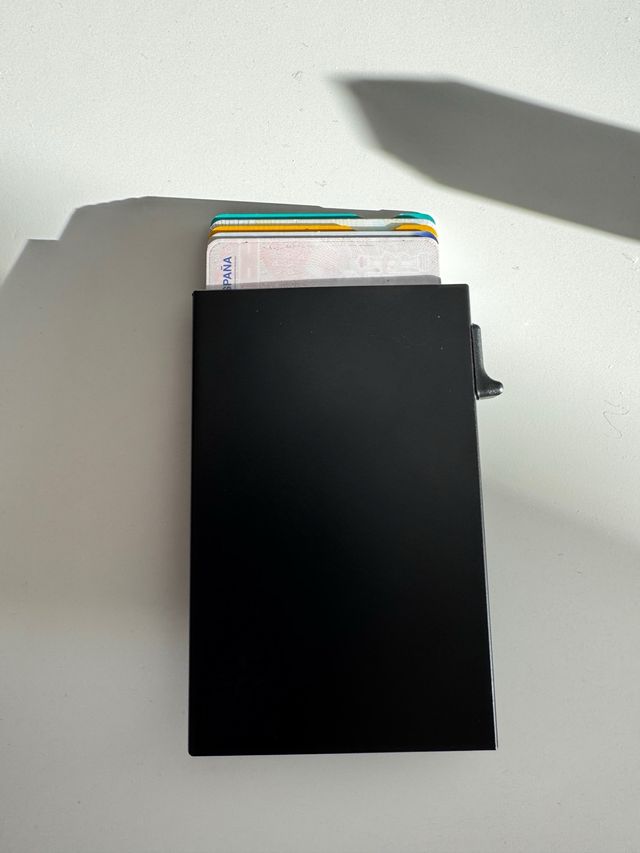 Cartera billetera de diseño moderno y elegante. también vale para llevar monedas - Mecanismo de extracción de tarjetas. - Acabado liso.