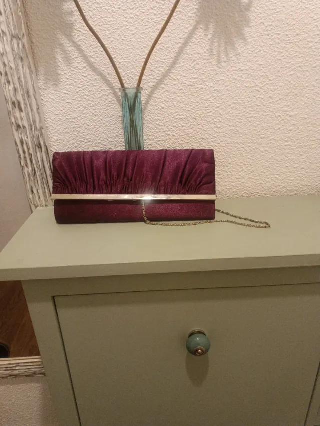 Cartera de fiesta morada con cadena