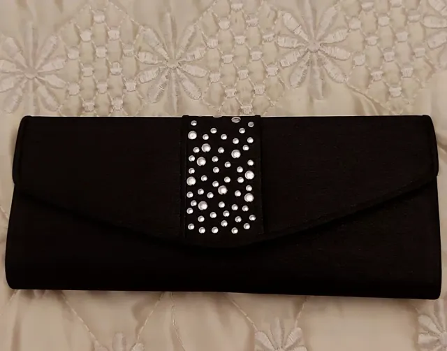 Cartera de mano negra con pedrería