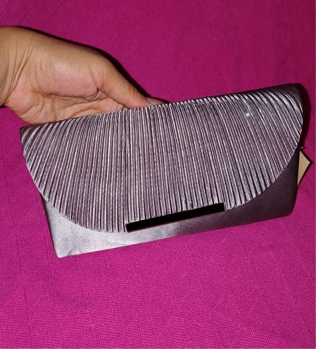Cartera de mano plateada plisada