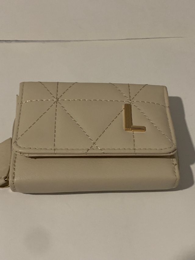 Cartera de mujer beige con logo L dorado