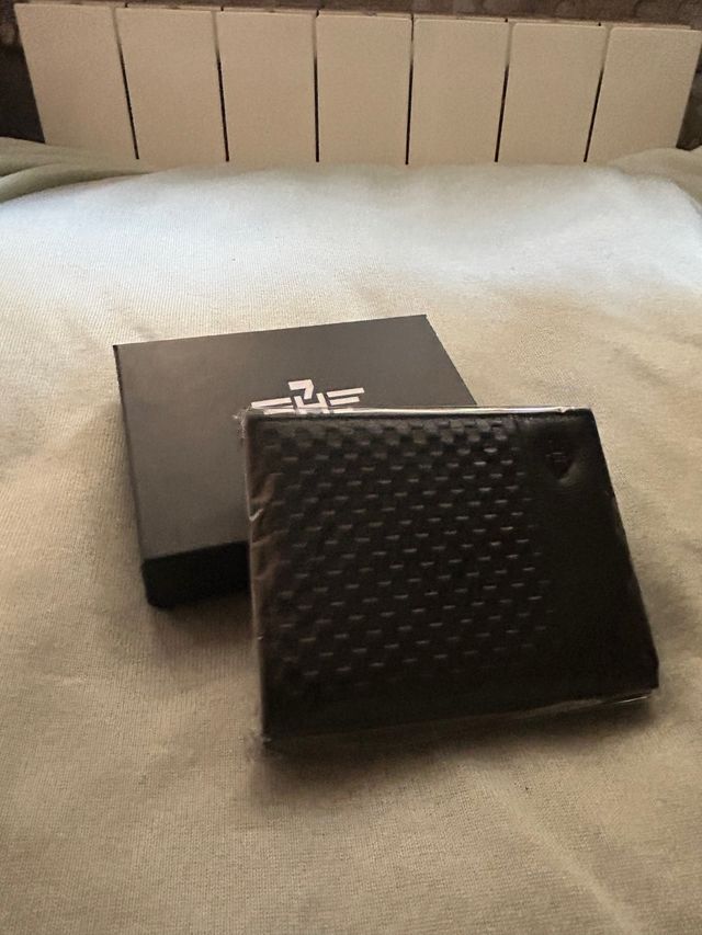 Cartera de piel negra con diseño texturizado