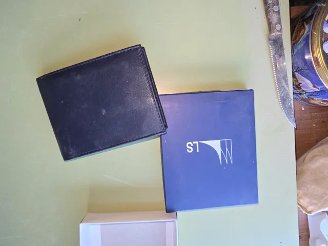 Cartera de piel negra y azul