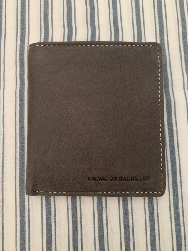 Cartera de piel Savador Bachiller sin uso. 2 compartimentos para billetes y 8 compartimentos para targetas. Medidas 9,6cm x 10,3cm