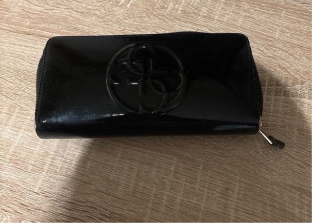 Cartera negra charol con logo