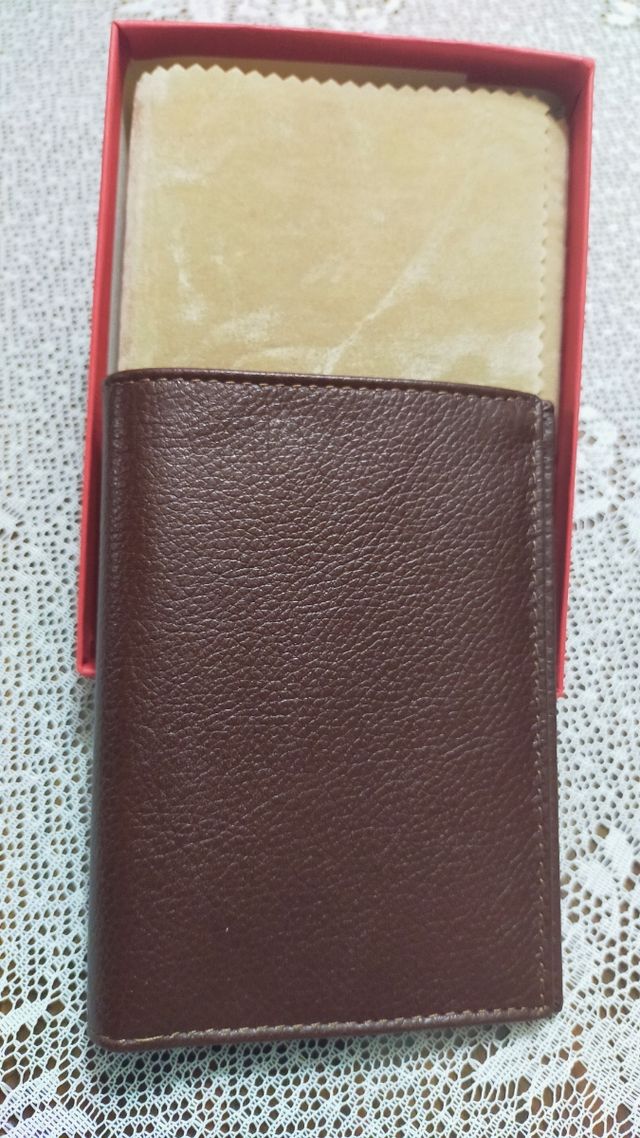 cartera de piel auténtica de Ubrique, con certificado de autenticidad. Color marrón, logotipo Cocacola. 12 x 9 cm