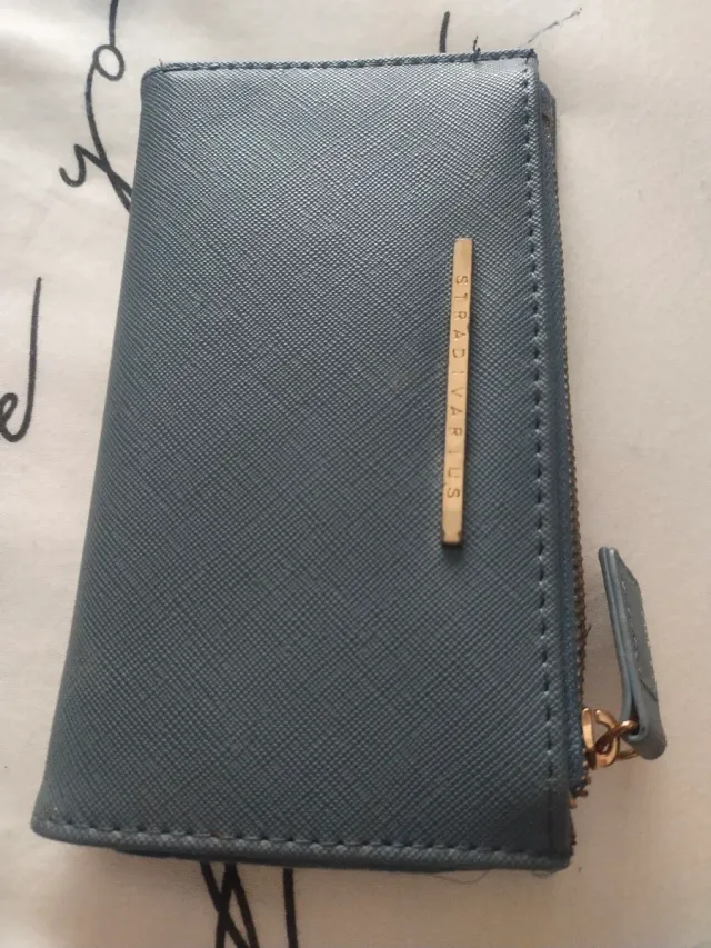 Cartera Stradivarius azul y dorada