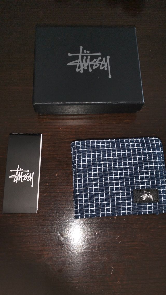 Cartera Stussy azul y blanca