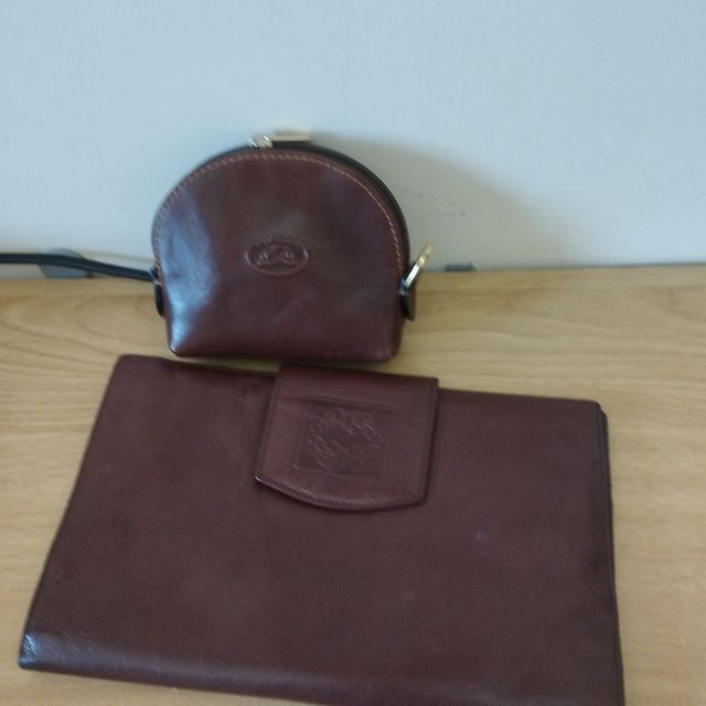Cartera y monedero de piel marrón