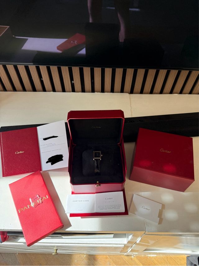 Detalles del productoPrecioso reloj Cartier Tank Must con esfera negra.
