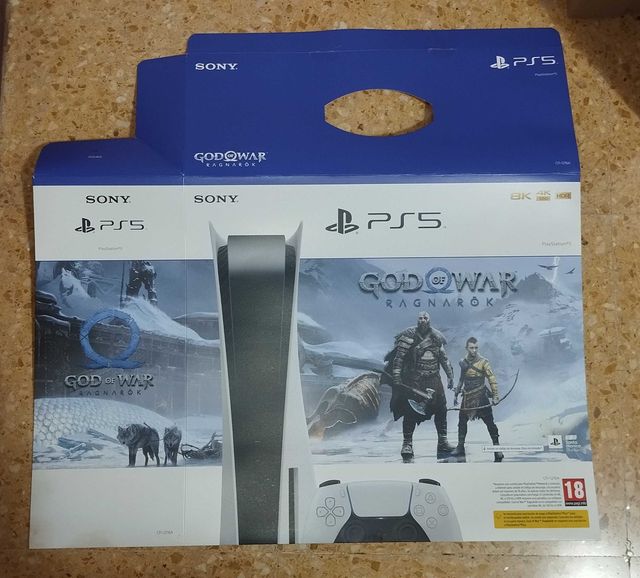 Detalles del productoVendo el cartón recubridor del bundle oficial de PlayStation 5 con God of War: Ragnarök para la versión fat de la consola. Es solamente el empaque exterior que se ve en la foto. Tiene una pequeña mancha en la esquina inferior izquierda por el paso del tiempo, pero por lo demas está en perfecto estado, no tiene ninguna rotura.