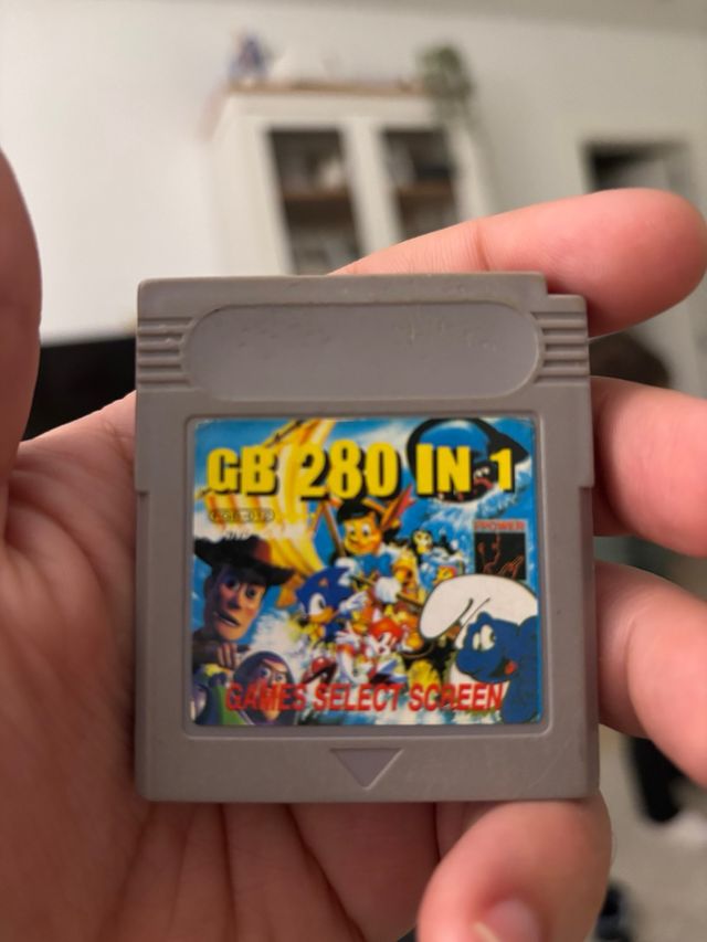 Cartucho de juegos para Game Boy con 280 títulos. - Incluye una gran variedad de juegos. - Diseño colorido con personajes icónicos.