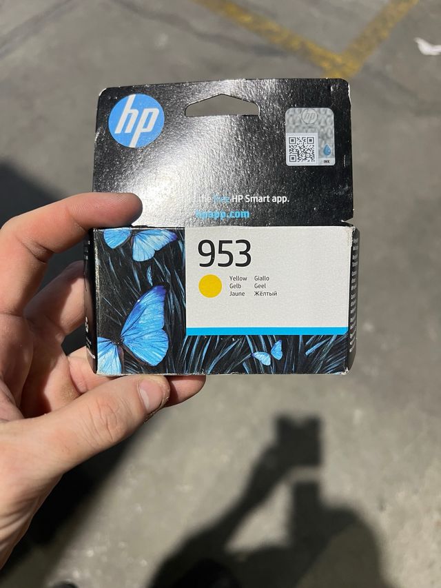 Cartucho de tinta HP 953 de color amarillo. - Modelo: 953 - Color: Amarillo (Yellow, Giallo, Geel, Желтый) - Diseño con mariposas azules.