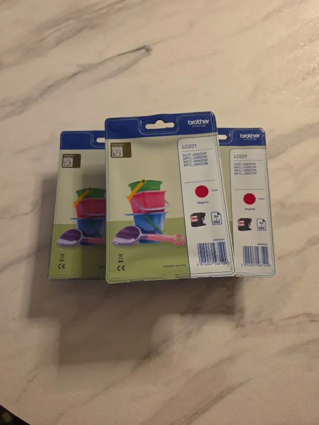Cartucho de tinta original Brother LC221. - Tres unidades - Color: Magenta. - Compatible con modelos DCP-J562DW, MFC-J480DW, MFC-J680DW, MFC-J880DW.