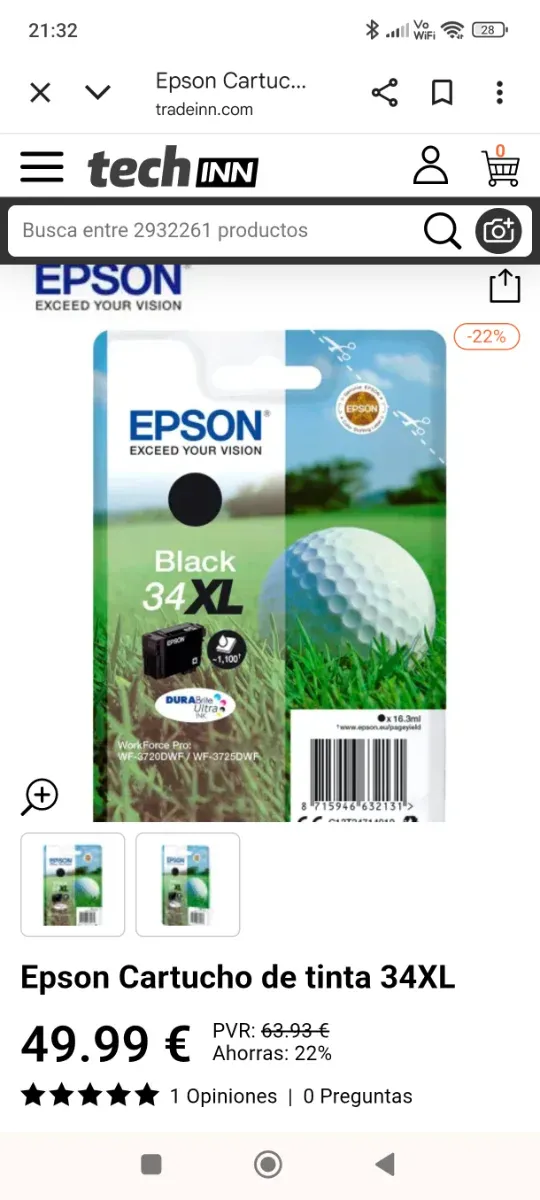 Cartucho Tinta Epson 34XL Negro