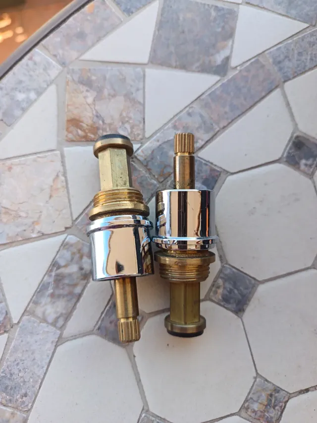 Dos cartuchos de repuesto para grifo, uno de latón y otro con acabado cromado. - Material: Latón y cromo. - Diseño robusto.