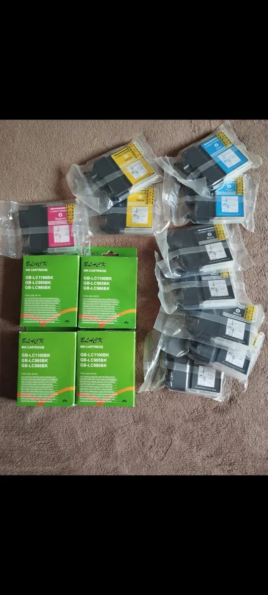 Lote de cartuchos de tinta para impresoras. - Modelo: GB-LC1100BK. GB-LC985BK. GB-LC980BK. - Van 14: 4 negros XL, 5 negros, 2 azules, 2 amarillo y 1 Margenta.