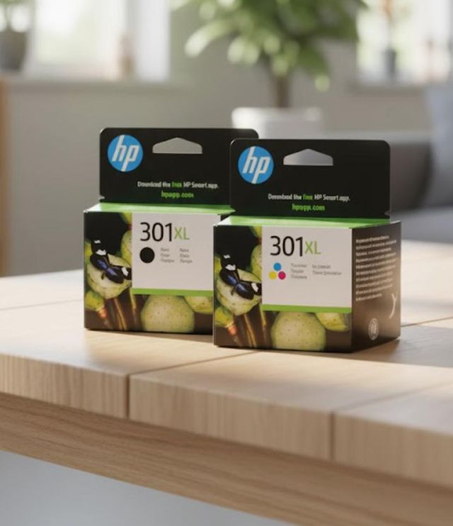 Pack de dos cartuchos de tinta HP 301XL, uno negro y otro tricolor. - Cartucho de tinta negra HP 301XL. - Cartucho de tinta tricolor HP 301XL.