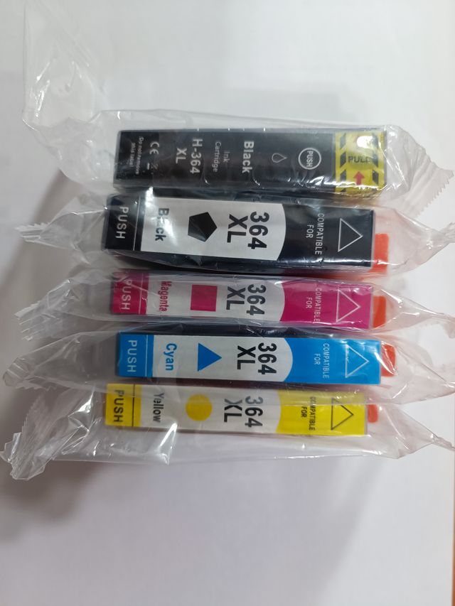 Pack de cartuchos de tinta compatibles 364 XL: - 2 Cartuchos negro (Black) - 1 Cartucho magenta (Magenta) - 1 Cartucho cian (Cyan) - 1 Cartucho amarillo (Yellow)
