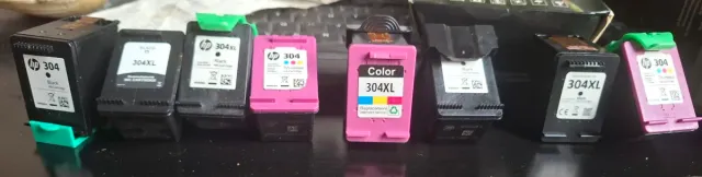 Detalles del productoLote de cartuchos de tinta HP 304 vacíos, listos para ser rellenados o para proyectos de manualidades.
