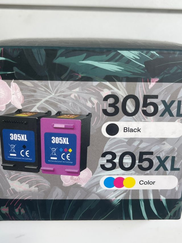Pack de dos cartuchos de tinta recargados para impresoras HP. - Cartucho negro HP 305XL. - Cartucho tricolor HP 305XL. - Recargados y listos para usar.