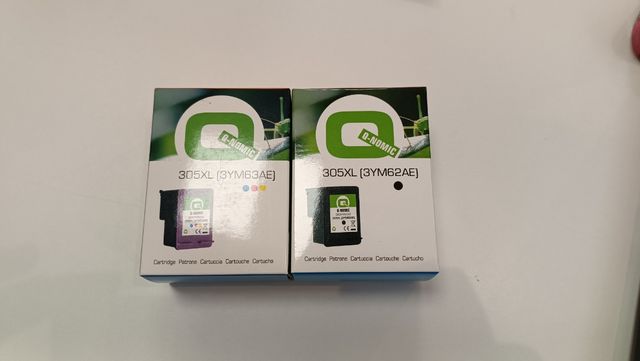 Dos cartuchos de tinta Q-NOMIC 305XL. - Modelo 3YM63AE (Negro) - Modelo 3YM62AE (Color) - Compatibles con impresoras HP.