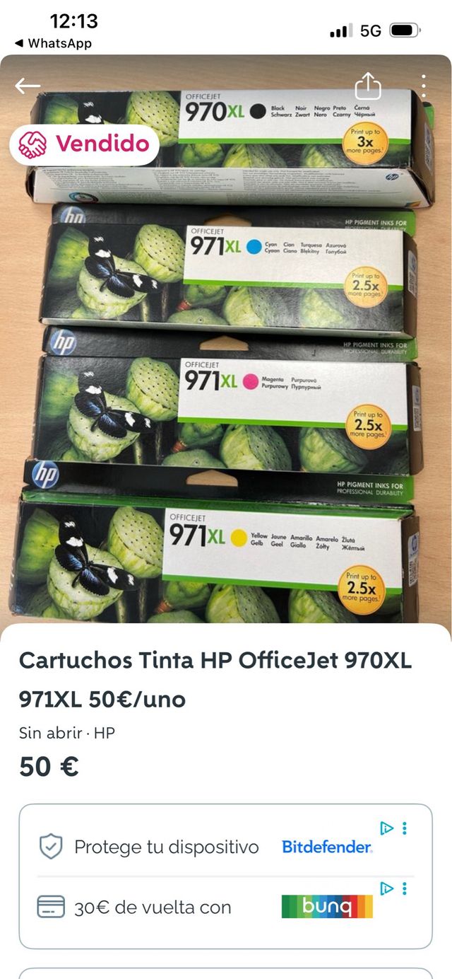 Detalles del productoSe venden cartuchos de tinta HP OfficeJet.