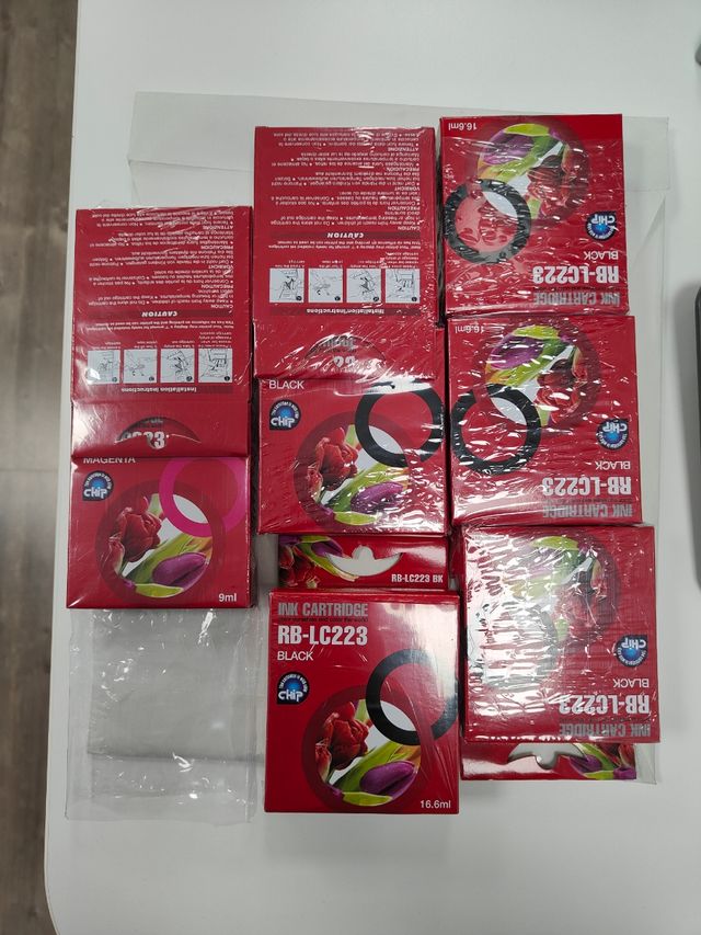 Lote de 6 cartuchos tinta negro 16,6ml y dos magenta de 9ml. Traen chip incorporado. Compatible con impresoras brother.