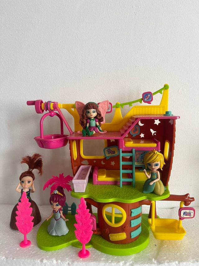 Casa tamaño mediano de Hadas 🧚🏼 Incluye: 4 muñecas hadas, 3 arboles rosas, maceta rosa Hago envíos y entrega en mano