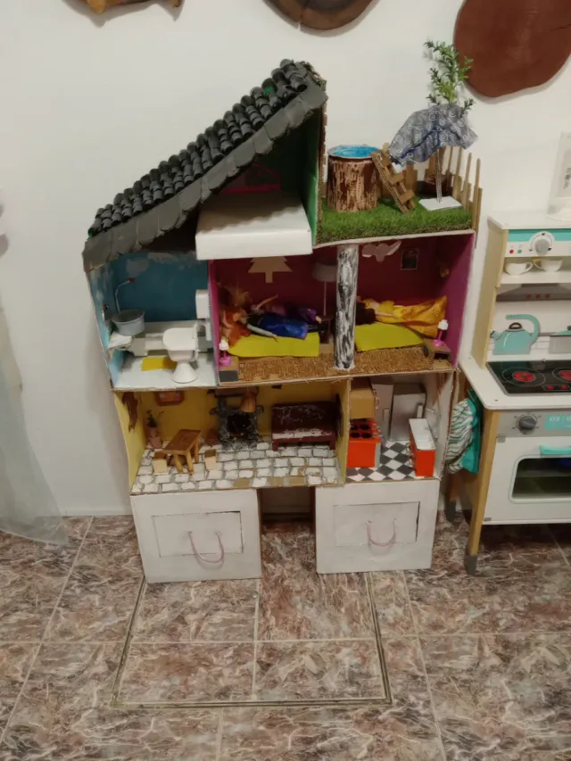 Casa de muñecas con muebles hecho a mano