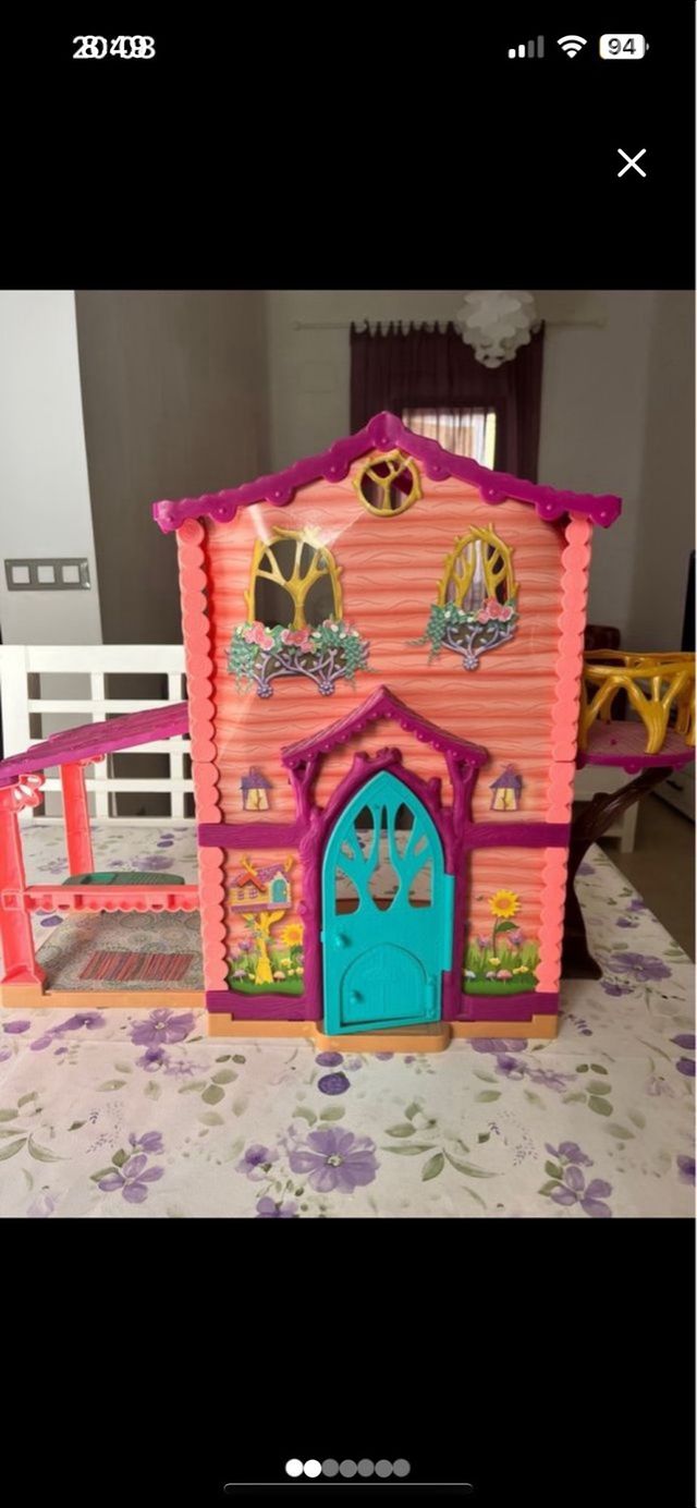 Casa de muñecas de la marca Enchantimals, con un diseño colorido y detallado. Más caja de muebles,animales,muñecas y complementos