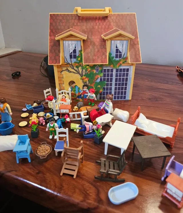 Detalles del productoConjunto de casa de muñecas Playmobil con figuras y mobiliario.