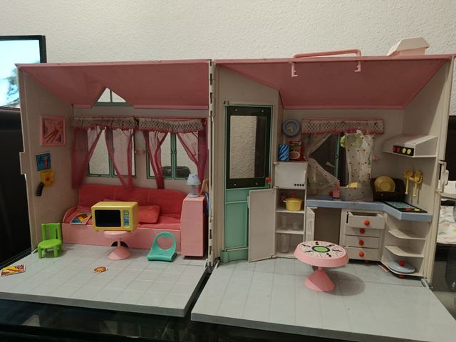 Detalles del productoCasa de muñecas de dos plantas con un diseño encantador en tonos rosa y azul.
