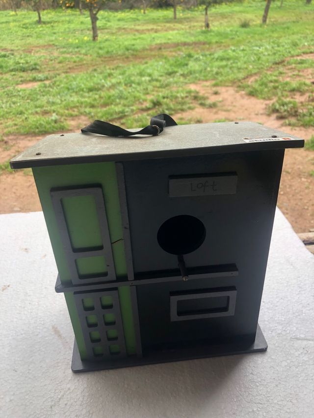 Casa de Pajaro de Madera color verde y negro medida 18X10X23