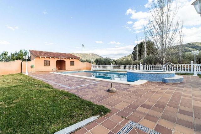 Detalles del productoChalet en el campo de Bullas (Murcia). Acceso a la casa y al terreno mediante portones eléctricos y un largo camino de entrada hasta una amplia zona de aparcamiento. La casa principal cuenta con 3 dormitorios, 2 baños, un amplio salón, patio central y cocina con dos grandes puertas de madera que dan al exterior. También cuenta con un amplio comedor con acceso a una zona de césped con una gran piscina vallada (11 x 6) con jacuzzi circular integrado y rodeado de lastres blancos, cuarto de piscina con bomba de agua y baño, y una habitación que puede utilizarse como cuarto dormitorio. Además, la casa cuenta con ventanas eléctricas y calefacción central. Todo ello en un terreno de 35.000 m², de los cuales 27.000 están vallados en la zona de la casa y 8.000 cerca de la parcela principal. También cuenta con una pequeña caseta de unos 30 metros y un amplio almacén. La casa está lista para entrar a vivir, ubicada en una zona rural muy tranquila, a solo 5 minutos en coche de Bullas.