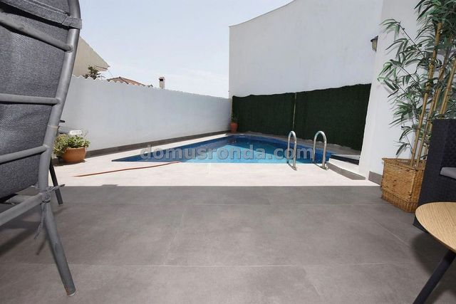 En el exterior, la vivienda cuenta con una terraza privada perfecta para disfrutar del aire libre. Y como joya principal: una piscina triangular de estilo moderno, ideal para refrescarse, relajarse o pasar ratos agradables con familia y amigos.