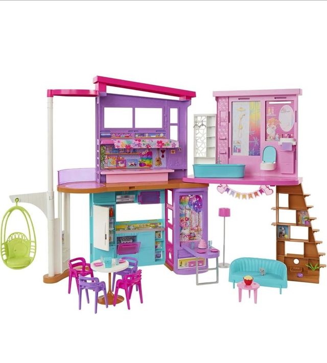Detalles del productoBarbie Casa Malibú Casa de muñecas plegable 2 pisos con 6 habitaciones y muebles, incluye 30 accesorios, juguete de regalo +3 años (Mattel HCD50)