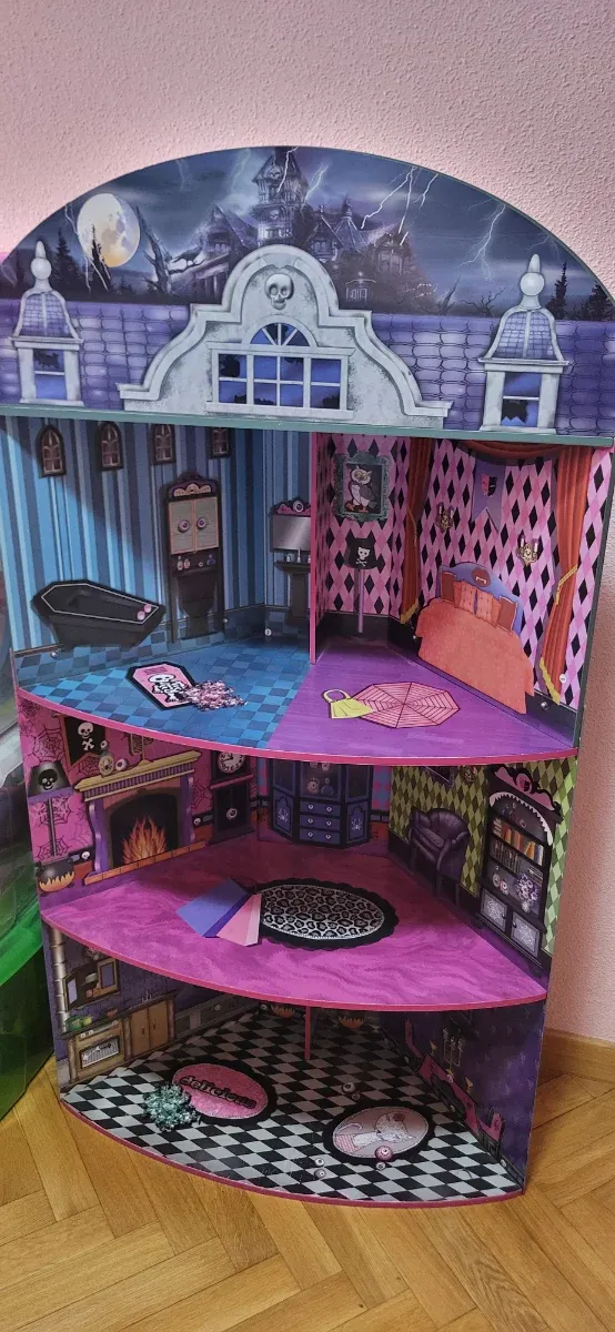 Casa de muñecas Monster High de gran tamaño, con un diseño detallado y temático. - Diseño de casa embrujada. - Múltiples habitaciones .