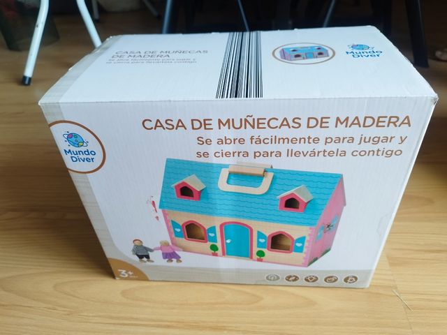 Detalles del productoPreciosa casa de muñecas de madera de la marca Mundo Diver. Es ideal para jugar y se puede cerrar fácilmente para llevarla a cualquier parte.