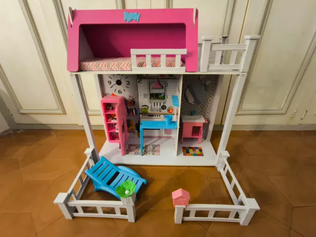 Casa de muñecas Nancy de dos pisos, fabricada en madera. - Estructura de madera. - Dos niveles de juego.