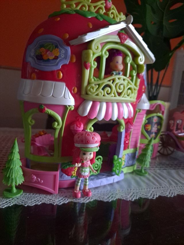 Detalles del productoIndescriptible, juegan con la casa pastelería de tarta de fresa y su amiga ciruelita, con un montón de accesorios, y la caja registradora hace ruido y voz de tarta de fresa 🍓, una genialidad. Te l9 vas a perder?