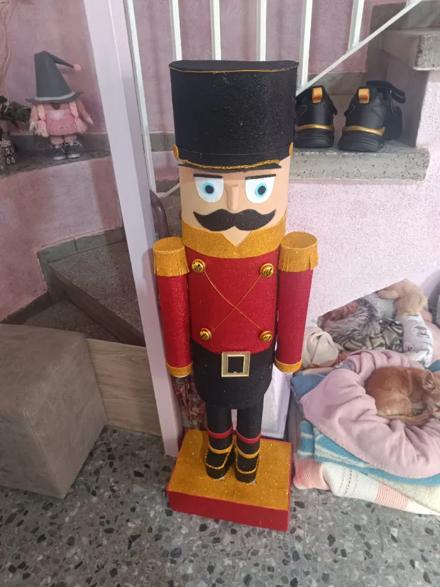 Detalles del productoFigura decorativa de cascanueces hecha a mano, ideal para añadir un toque festivo a tu hogar.