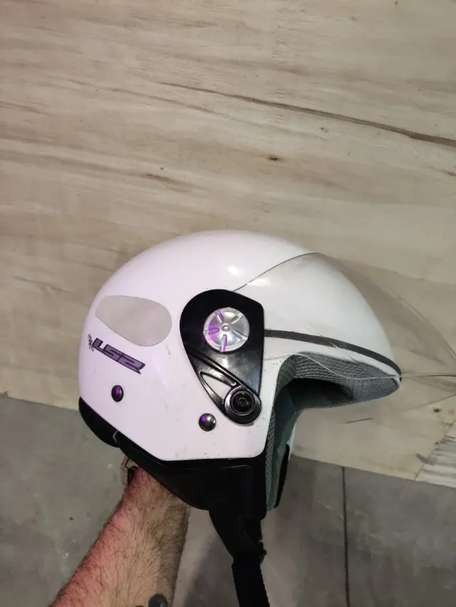 Casco abierto de la marca LS2 en color blanco. Ideal para trayectos urbanos. - Diseño abierto tipo jet. - Visera transparente. - Cierre de seguridad. - Talla M