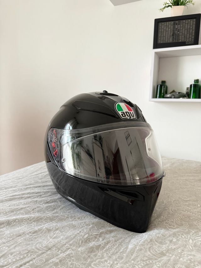 Casco integral de la marca Agv en color negro. talla XL en buen estado visera transparente antivaho pinlock visera interna solar